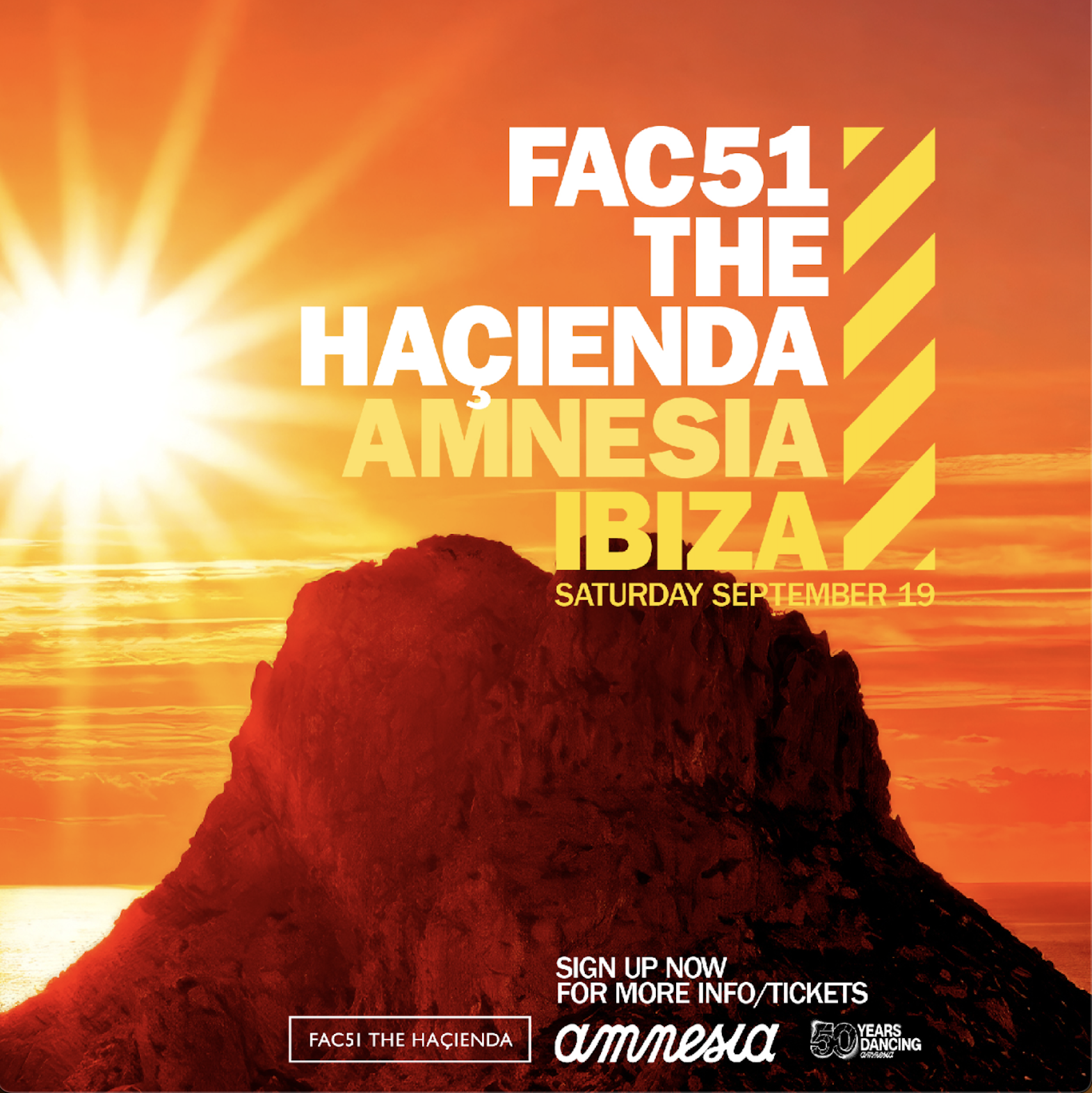 FAC51 The Haçienda are coming to Amnesia in Ibiza on the 19th September for a very special event. More details to follow. Sign up for more info and tickets at Laylo.